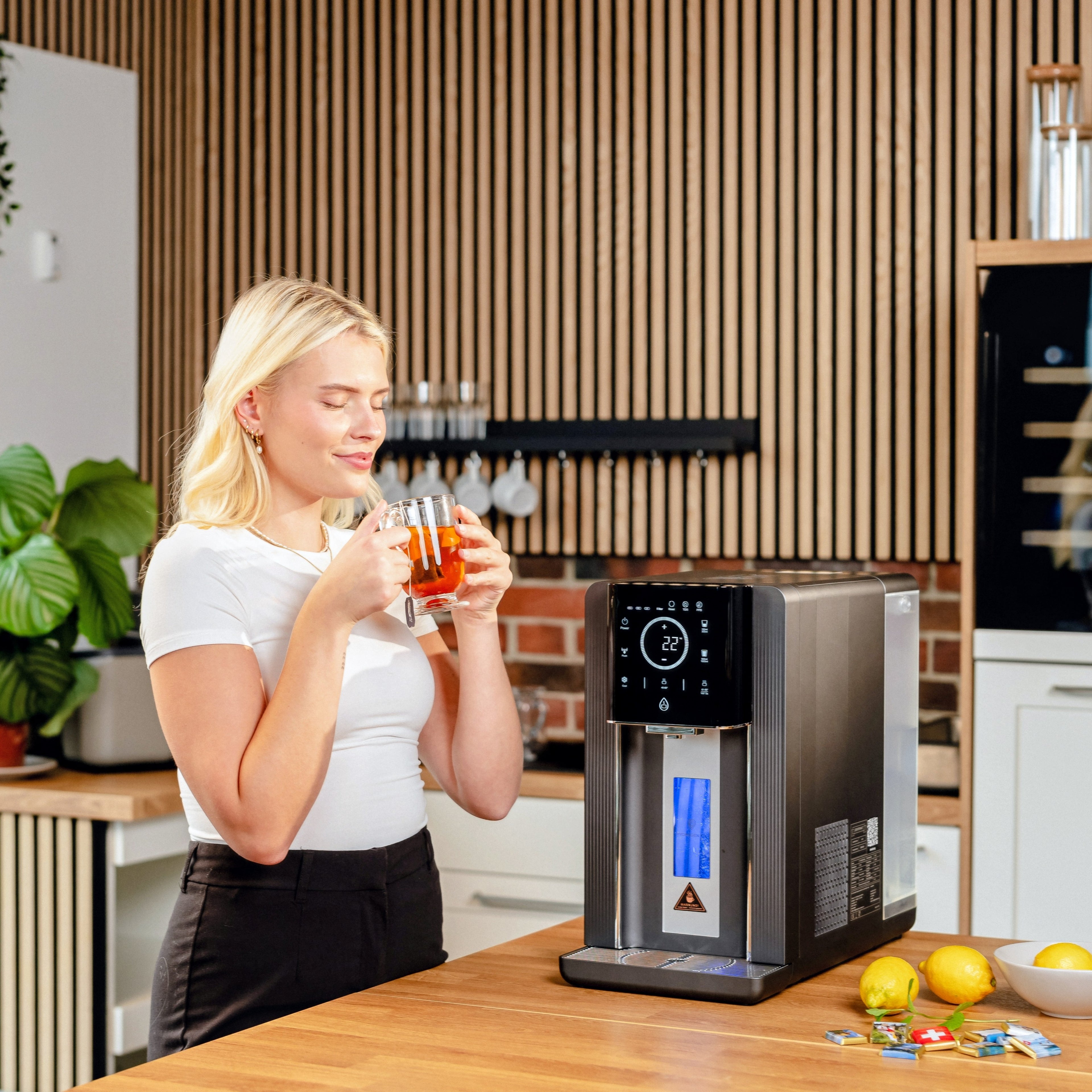 Auf Knopfdruck kochend heißes Wasser in vier Temperaturstufen – ideal für Tee, Kaffee oder die Küche.